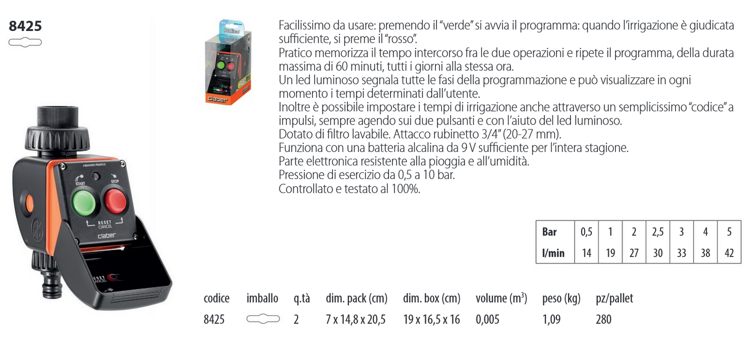Centralina programmatore acqua PRATICO CLABER 8425 Irrigazione giardino prato