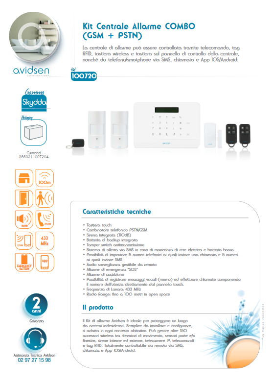 Kit Centrale Allarme COMBO (GSM + PSTN) AVIDSEN
