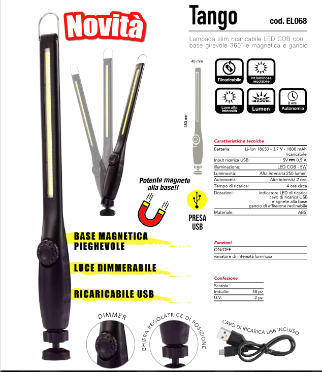 Torcia slim ricaricabile 250 lumen/ 5W - Tango EL068 CFG est en rupture de stock et sera expédié dès qu’il sera de retour en stock.