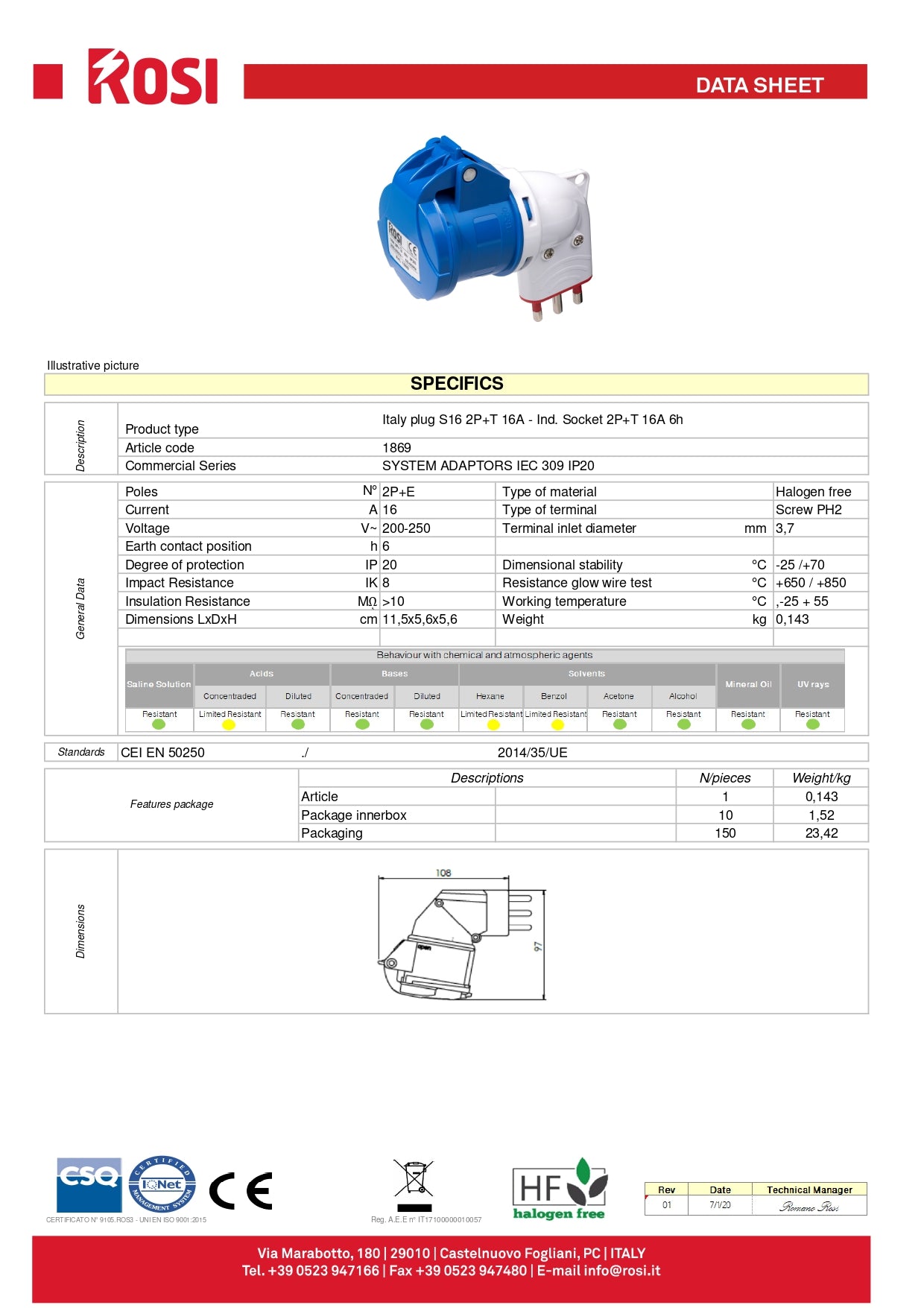 Adattatore industriale spina 16A + presa CEE 2P+T 220V est en rupture de stock et sera expédié dès qu’il sera de retour en stock.