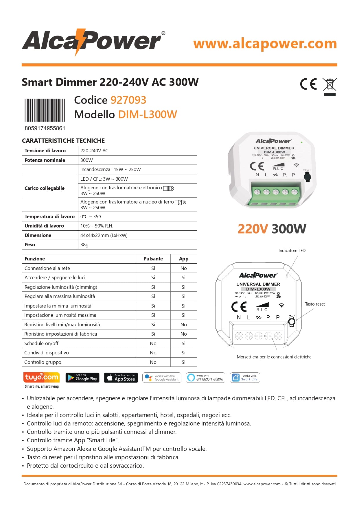 Dimmer Smart Wi-Fi da pulsante 220-240V AC 300W - Alcapower