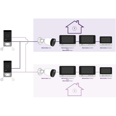 - Piattaforma bifamiliare evolutiva fino a 3 schermi, 2 pulsantiere esterne e 1 telecamera per famiglia