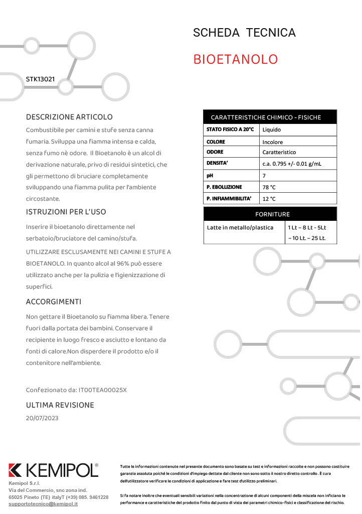 Bioetanolo per stufe e camini 1 Litro (Confezione da 12pz)- Kemipol