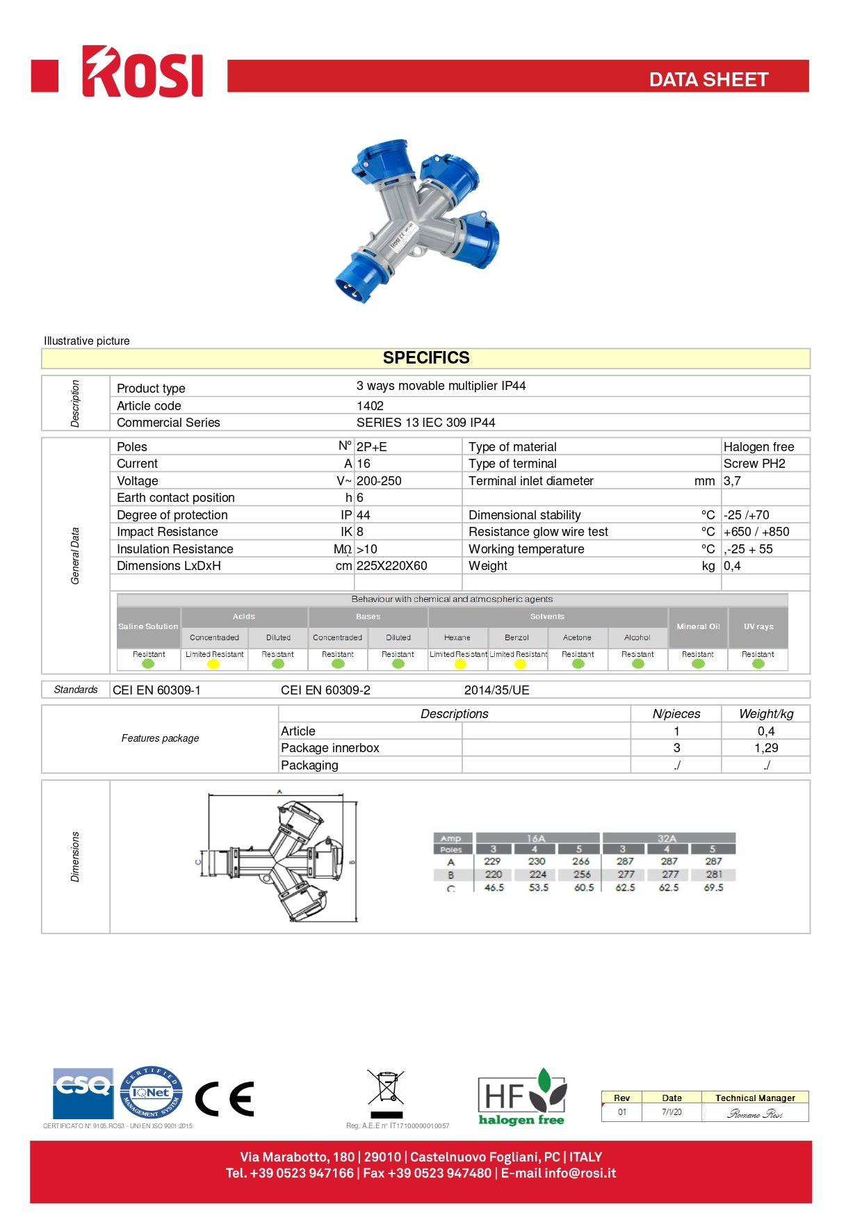Descrizione Moltiplicatore mobile a 3 uscite IP44