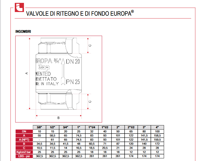 Disponibile con filetto americano NPT nelle misure da 1/2”a 4”.