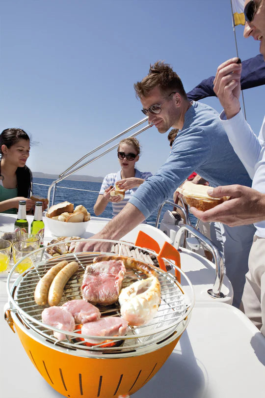 LotusGrill è un fantastico grill che funziona a carbonella. Grazie al suo sistema di ventilazione brevettato a batteria avrete la griglia pronta in soli 4 minuti. Comodissimo per cuocere le verdure, la carne ed il pesce con tutta la fragranza della buona cottura a carbone e senza fumo, in quanto il grasso non sgocciolerà sulla carbonella. Barbecue con batterie e cavo di alimentazione USB. Griglia con doppia ghiera sul perimetro. Coperchio per il contenitore della carbonella - Contenitore della carbonella - Piano di accensione - Guscio interno - Guscio esterno con vano batterie integrato. Fibbie di bloccaggio in acciaio inox - Sistema di ventilazione combinato di accensione / spegnimento e regolatore di calore con spia luminosa. Borsa da trasporto - Materiale: acciaio inox, acciaio e plastica. Alimentazione: 4 batterie AA (1,5 V) - Cavo di alimentazione USB. Dimensioni griglia: Ø 32 cm - Dimensioni: 35 x 23,4 cm - Peso: 3,7 kg.