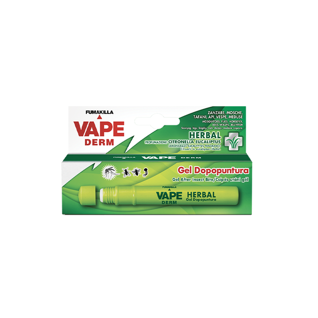 VAPE DERM HERBAL DOPOPUNTURA è un prodotto cosmetico dalle proprietà idratanti e lenitive, che, applicato sulla pelle, allevia anche il fastidio provocato dalle punture di insetti, quali zanzare e mosche, donando una sensazione di immediato sollievo. Tenere quindi VAPE DERM HERBAL DOPOPUNTURA sempre a portata di mano.