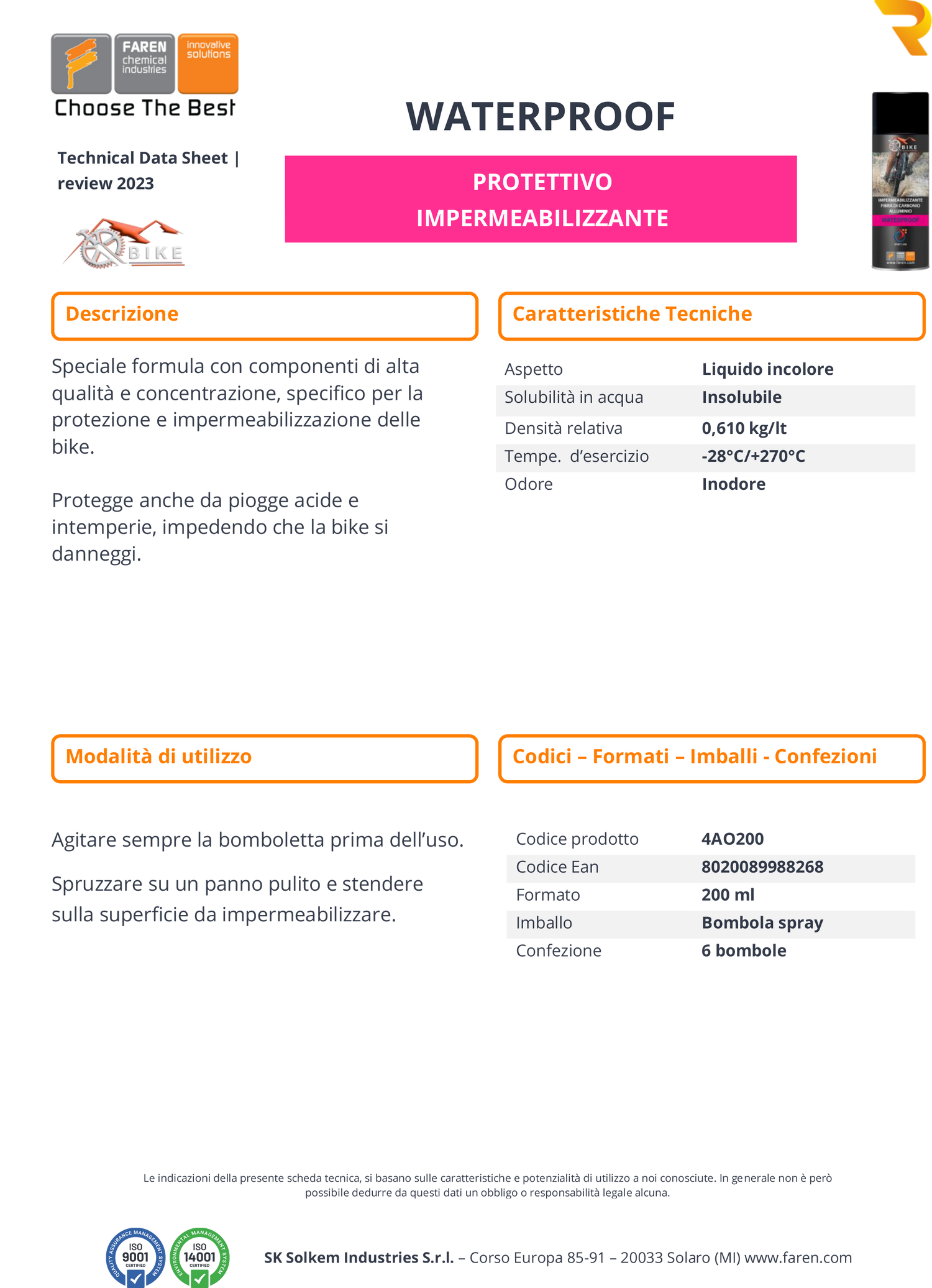 FAREN Impermeabilizzante protettivo spray WATERPROOF