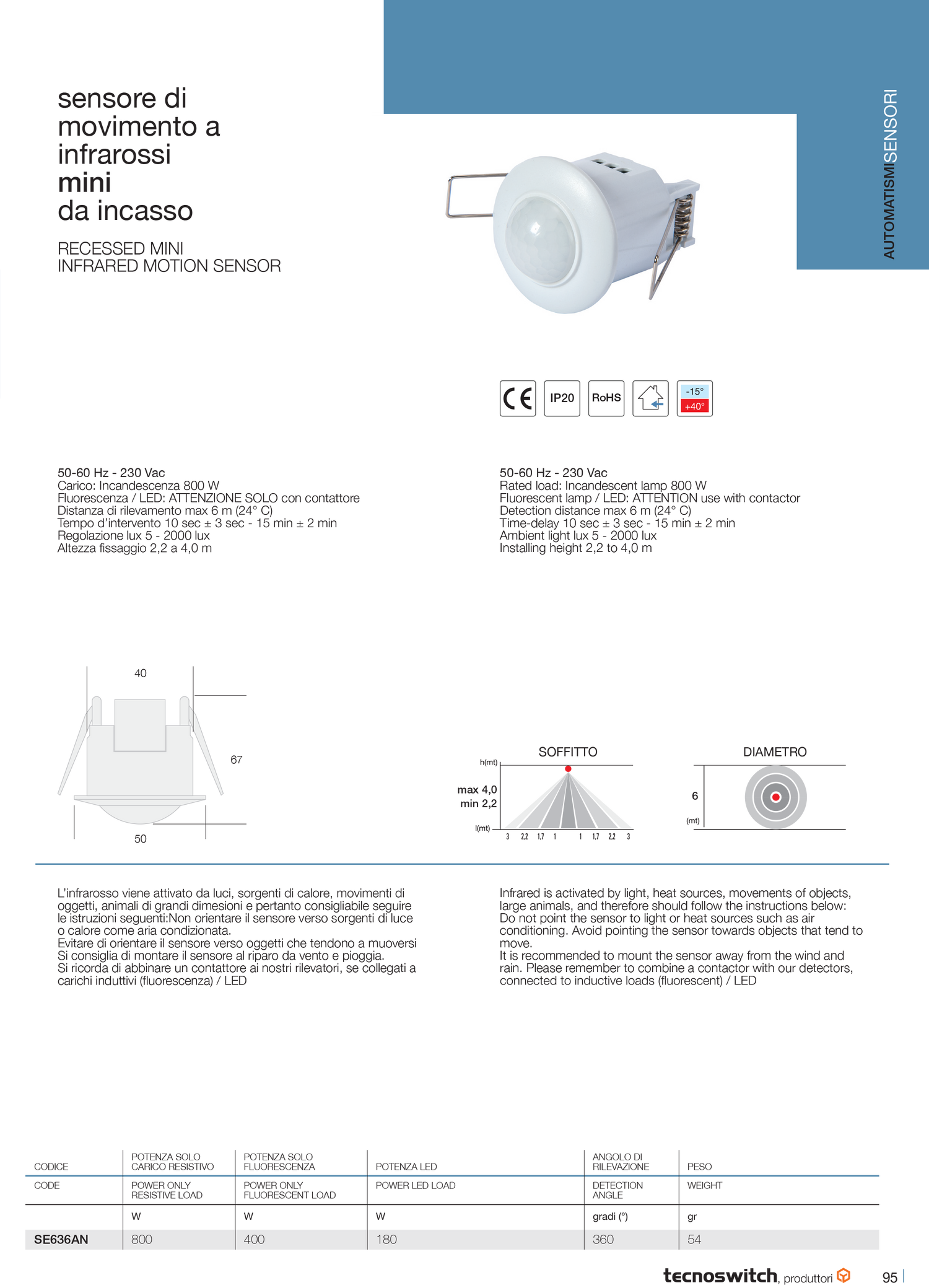 Sensore di movimento a infrarossi mini da incasso Tecno Switch