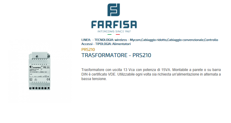 Trasformatore alimentatore - PRS210 FARFISA ...è stato ordinato al fornitore e verrà spedito non appena sarà di nuovo disponibile.