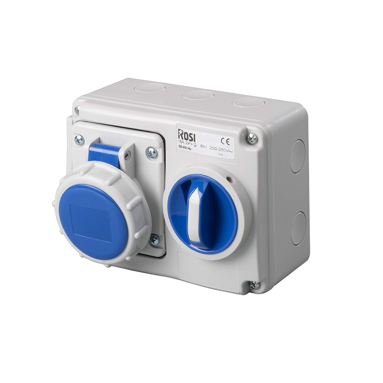 Rosi Presa fissa interbloccata 220V 2P+T IP67 orizzontale da parete con fondo