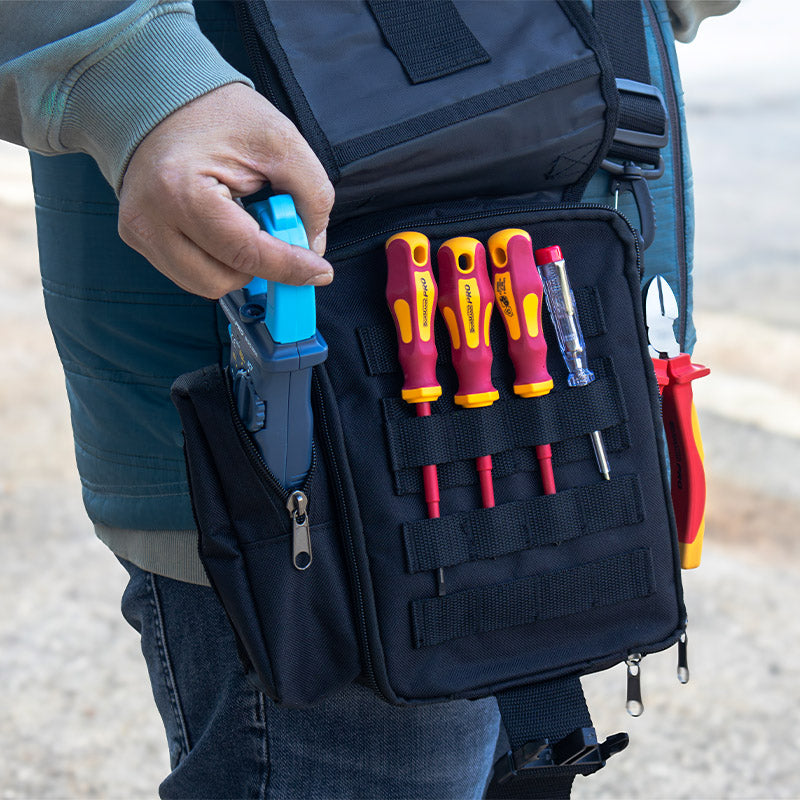 La Bormann Pro BTB3020 (cod. 075851) è una borsa porta utensili compatta e funzionale, progettata per offrire organizzazione e resistenza in ogni contesto di lavoro. Realizzata in tessuto tecnico rinforzato, è dotata di 7 tasche multiple per tenere in ordine cacciaviti, pinze, chiavi e minuteria.