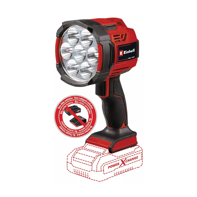 La torcia a batterie Einhell TE-CL 18/2500 LiAC - Solo da 2500 Lumen porta la giusta quantità di luce negli spazi oscuri. Essendo un componente della famiglia Power X-Change è compatibile con tutte le batterie agli ioni di litio di questa serie. La torcia a batteria è utile non solo per i luoghi poco illuminati come la cantina, il cantiere, la soffitta o in angoli remoti dell'officina. Questa maneggevole torcia a batteria, offre perfetta visibilità anche quando manca la corrente o in campeggio, quando si circola di notte, durante le passeggiate dopo il tramonto e durante attività all'aperto di altro tipo, quando è imprescindibile poter disporre di una fonte di illuminazione indipendente dalla corrente elettrica. Grazie alle sette durevoli lampade LED che totalizzano 2.500 Lumen di potenza e temperatura di luce da 6.500 K(elvin), questa lampada a batterie non limita la propria utilità solo alla cantina, ma è anche una robusta lampada resistente agli urti, comparabile a una lampada alogena. Due livelli di intensità luminosa garantiscono l'illuminazione ideale. Possibilità di fissaggio ad un cavalletto grazie al filetto da 1/4" di cui è dotato. Lampada maneggevole e versatile grazie al corpo sottile e leggero e all'impugnatura ergonomica con Softgrip. Nella fornitura non sono incluse batteria e caricabatterie della serie Power X-Change che potranno essere acquistati separatamente, ad esempio con il pratico Starter Kit.