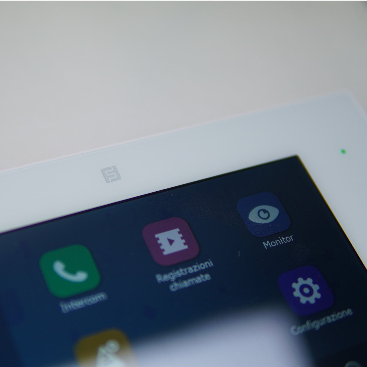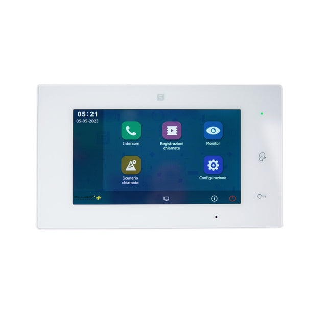 Monitor Wifi 7" dedicato al videokit 1SEPG+ con tecnologia Pluggy Plus. Il monitor è disegnato con una nuova estetica accattivante e connesso Wifi, è vivavoce, con schermo LCD 7” touch e memoria video integrata, interfaccia menu con OSD, pulsanti a sfioramento e icone illuminate a LED per apertura porta e conversazione. Led di segnalazione per esclusione suoneria e chiamate perse.