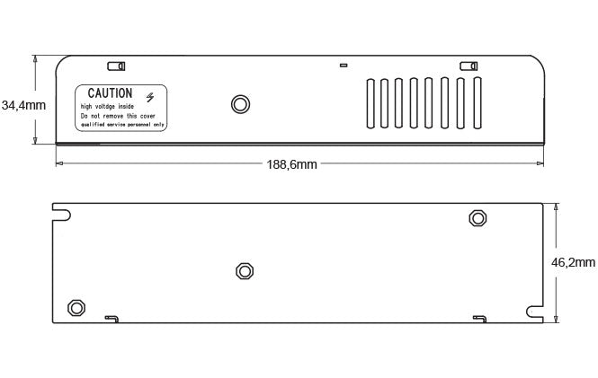 Trasformatore 100w TR24100 Dimensioni: 188,6 x 46,2 x h 34,4 mm Destinazione d’uso:InterniInstallazione:Fissaggio Parete / PlafoneFissaggio:Con viti non in dotazioneCorpo / Struttura:MetalloAlimentazione:110-240 Volt corrente alternata Uscita: 24V dc 100W   Scheda tecnica disponibile qui