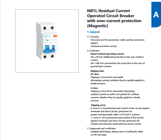 Interruttori magnetotermici differenziali serie NB1L1 da 4,5 kA per la protezione magnetotermica/differenziale. Particolarmente indicati per la protezione delle linee contro i sovraccarichi e i cortocircuiti, nonché contro i contatti diretti. Destinati ad applicazioni in ambito civile, terziario ed industriale. Disponibili in versione 1P+N con potere di interruzione di 4,5 kA su 2 moduli DIN. Corrente nominale da 6 A a 40 A e corrente differenziale di intervento di 30 mA, con curva caratteristica magnetotermica di tipo C e caratteristica di funzionamento del differenziale di tipo A. Accessoriabili con contatti ausiliari, contatti di allarme, bobina di sgancio e bobina di minima tensione.