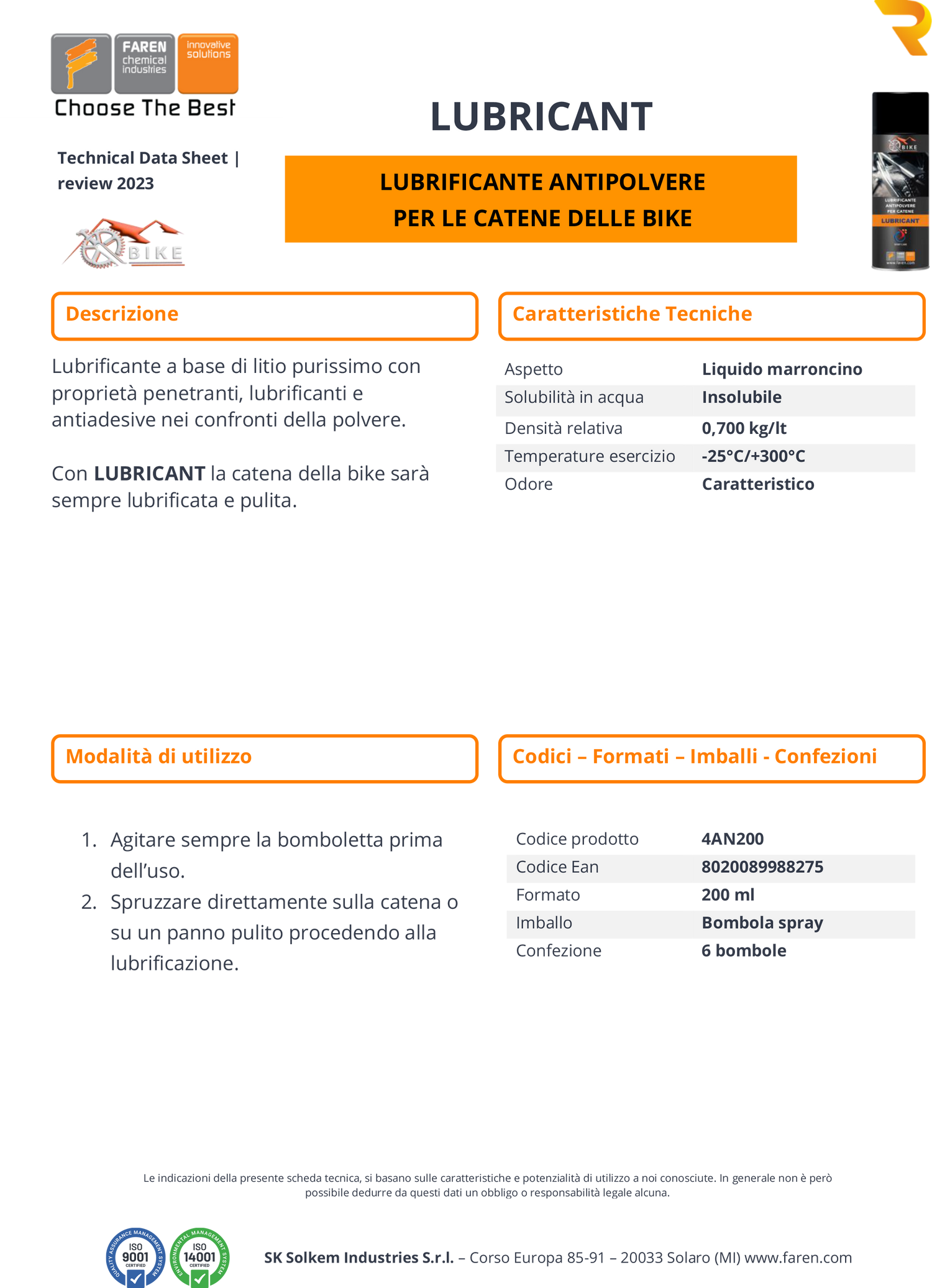 Grasso antipolvere per catena spray LUBRICANT 200ml