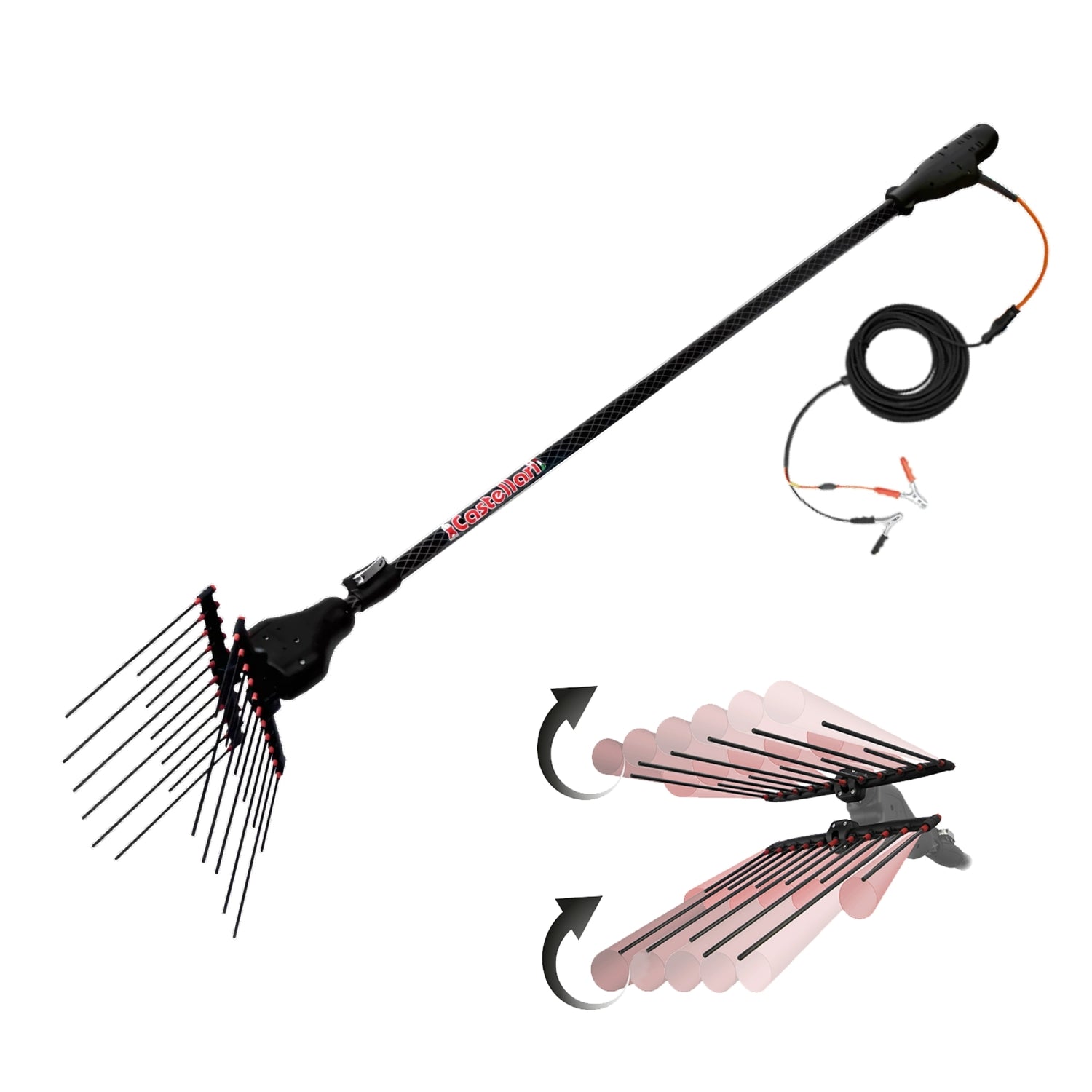 Kit Castellari Abbacchiatore Elettrico a batteria Tornado Carbon L con Rete Raccolta Olive 10x10 metri [BUNDLE]