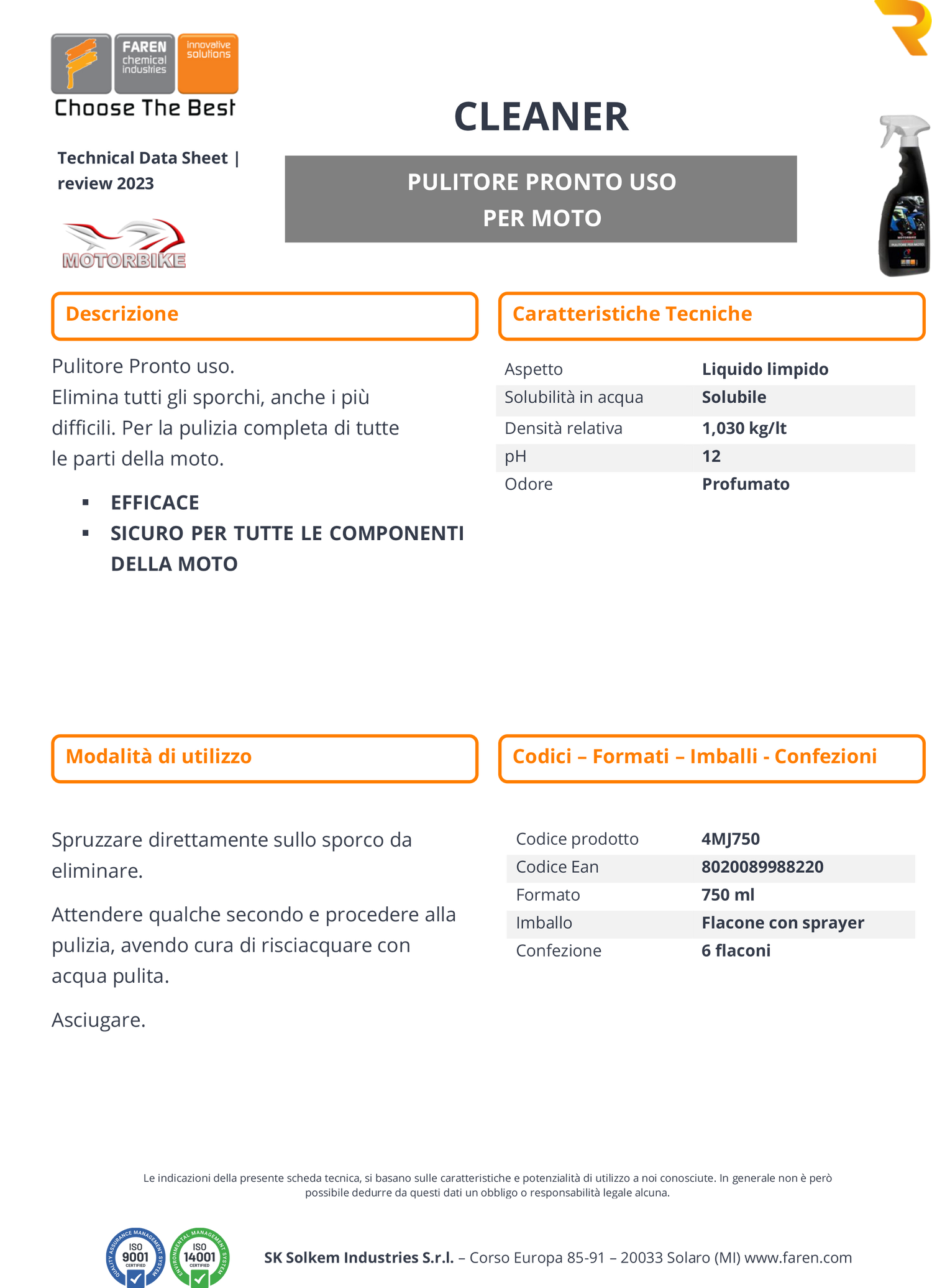Pulitore pronto uso per Moto CLEANER ...è stato ordinato al fornitore e verrà spedito non appena sarà di nuovo disponibile.